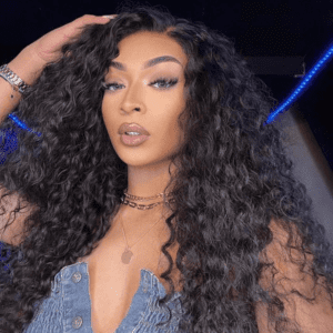Transparent lace closure Deep Wave wigs natural black colored with 100% human hair
